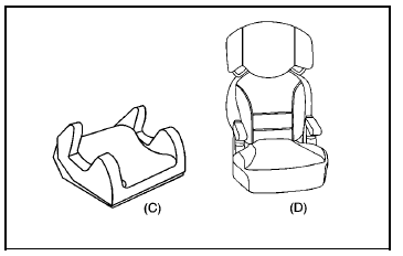 A booster seat (C-D) is a child restraint designed to improve the fit of the vehicle's safety belt system.